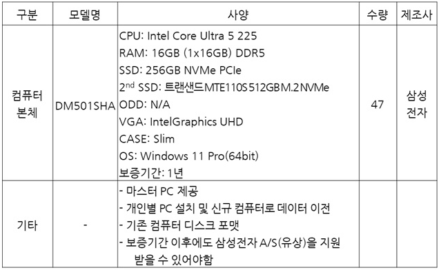 * 납품 장비와 추가 부품은 계약일 기준 12개월 이내에 제조된 제품으로 정품이여야 하며 각각 제조사 공급 확약서를 제출해야함